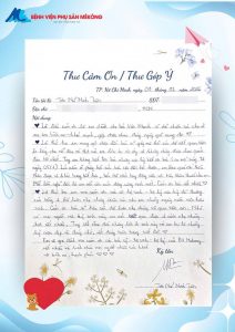 THƯ CẢM ƠN CỦA SẢN PHỤ NGUYỄN THỊ THU HOÀNG